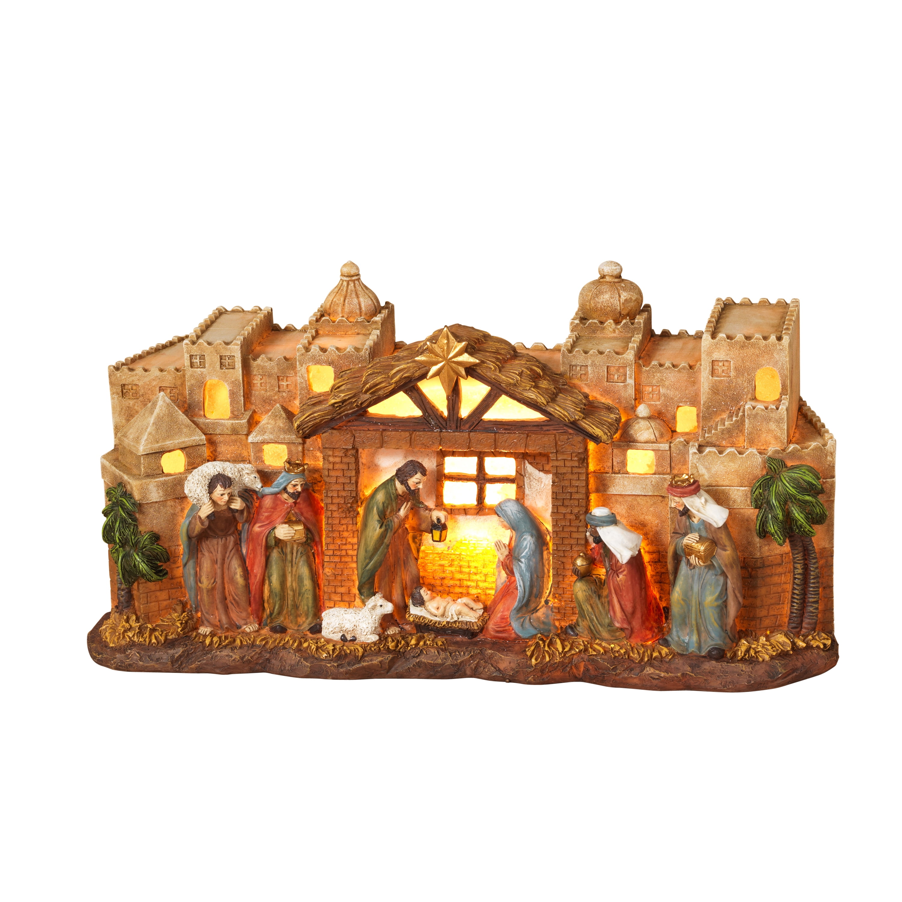 Lighted Nativity Scene With Manger And Bethlehem Backdrop Walmart Com